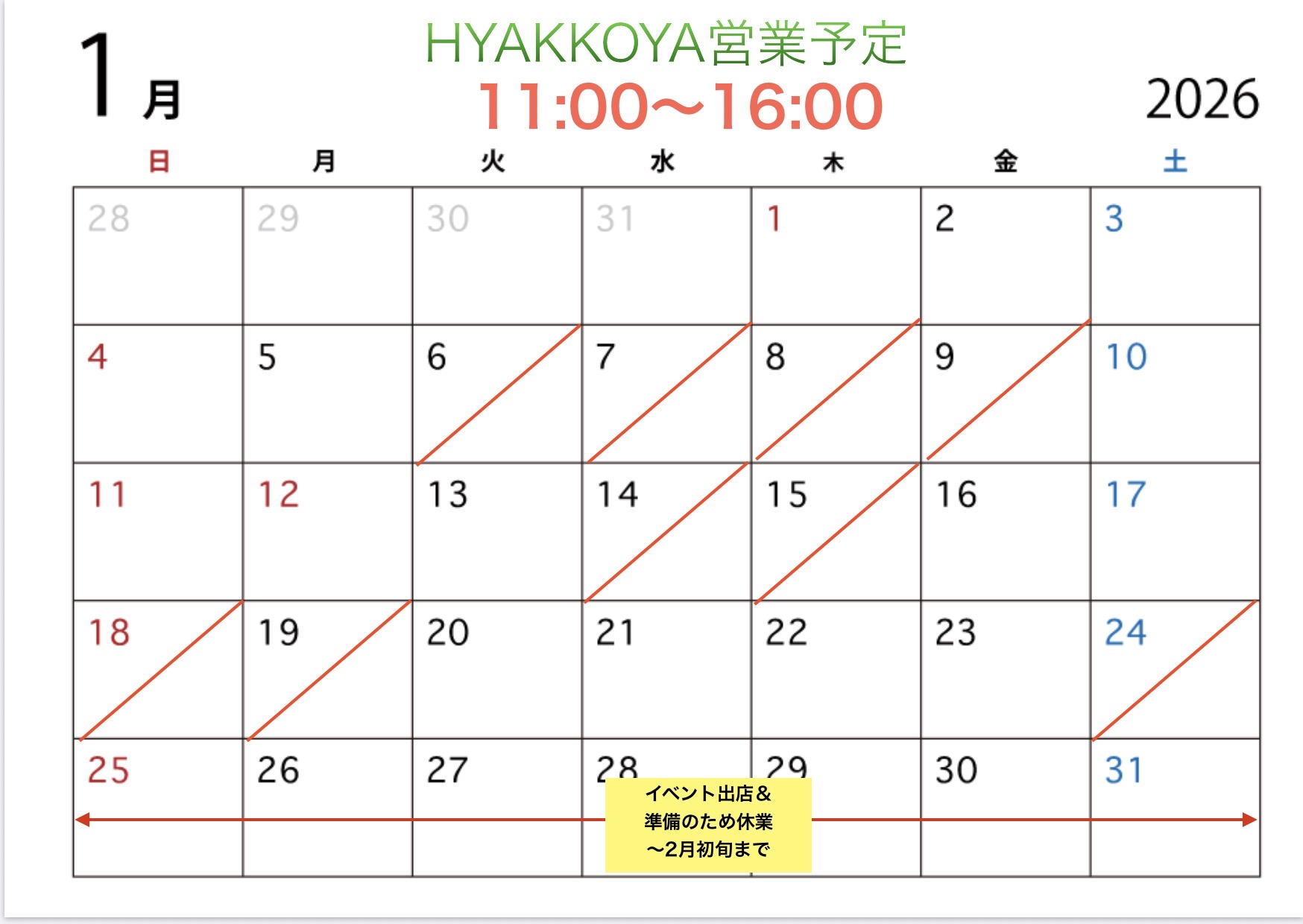 1/24土〜2月初旬までイベント出店&準備のため休業いたします。